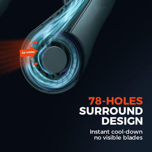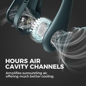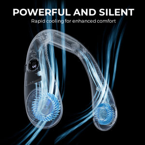 A novel neck fan that can send the wind without clogging your hands by simply placing it on your neck. Designed without wings, it can be used safely by children and the elderly. When using the fan, you don't have to worry about your hair getting caught on the fan blades.