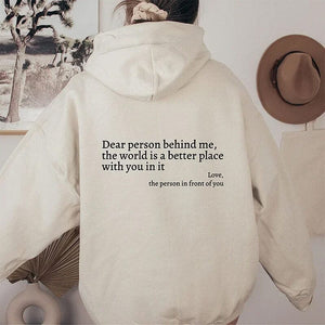 • 💖CONNECT WITH OTHERS IN STYLE: The "Dear Person Behind Me" sweatshirt is more than just a fashion statement – it's a way to connect with others in a meaningful way. Whether you're out running errands or meeting friends for coffee, this sweatshirt is sure to spark conversations and inspire kindness.