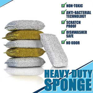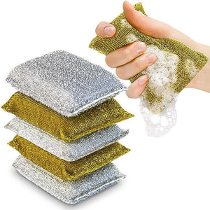 These all-purpose scouring pads are made from a metallic polyester over a thick, absorbent sponge for polishing pots and pans to a brilliant sheen. The scrub pads are antibacterial, will not rust, give a strong and powerful cleaning every time.