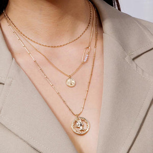 • Multi-Layer Necklace Features Chains with a Jesus Christ Cross Crucifix Pendant, a Blessed Virgin Mary Pendant and a Square Tag Pendant