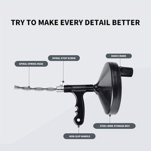 Tip: When you do encounter a blockage, after spinning the hand crank clockwise, if the wire feels 'stuck' in the drain or you can't push it in further or pull it out, simply spinning the hand crank in the opposite direction a few turns will free up the wire.