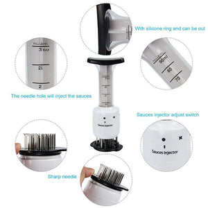• Meat Tenderizing - 27 stainless steel needles and 3 stainless steel needle injectors break the structure of the meat with ease, giving it a tender taste