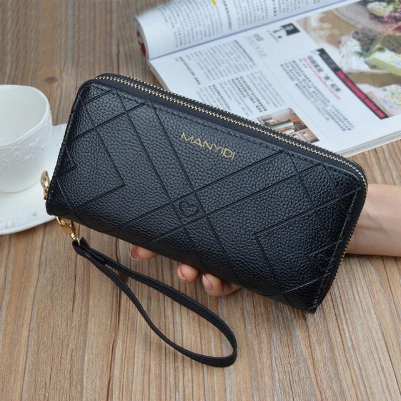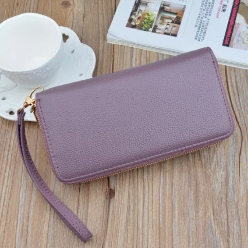Women Double Zipper Leather Brand Retro Long Wallet