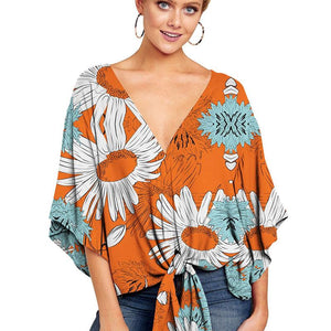 • Bohe chiffon shirts: v-cut neckline, feminine kimono style sleeves, a soft floral printed bodice & a trendy tie bottom hem.